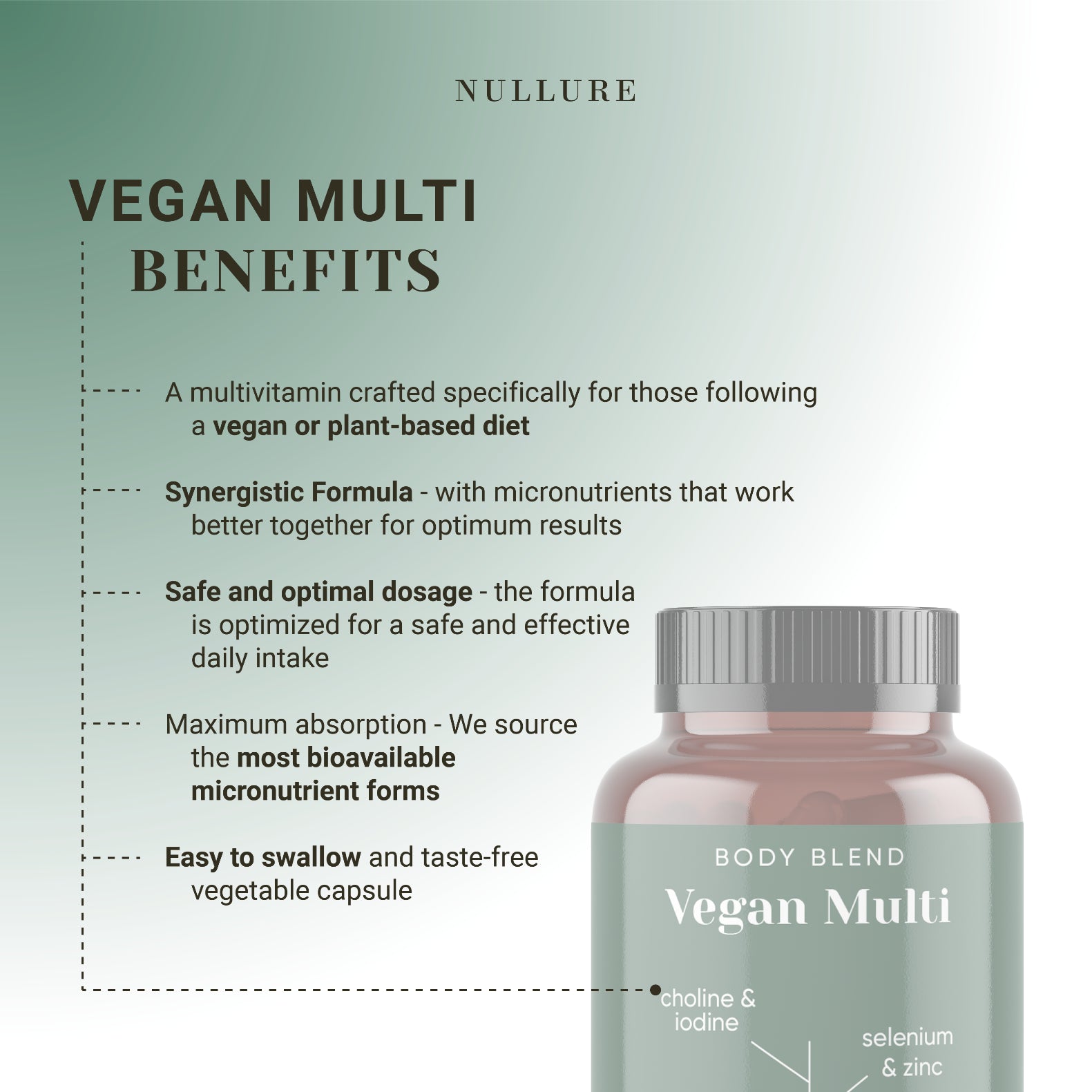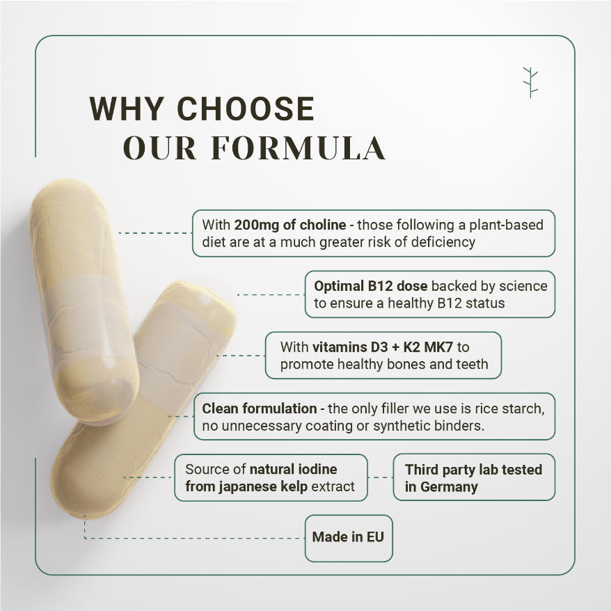 Ein veganes Multivitaminpräparat, das speziell für eine vegane oder pflanzliche Ernährung entwickelt wurde, um eine optimale Versorgung mit wichtigen Mikronährstoffen zu gewährleisten.