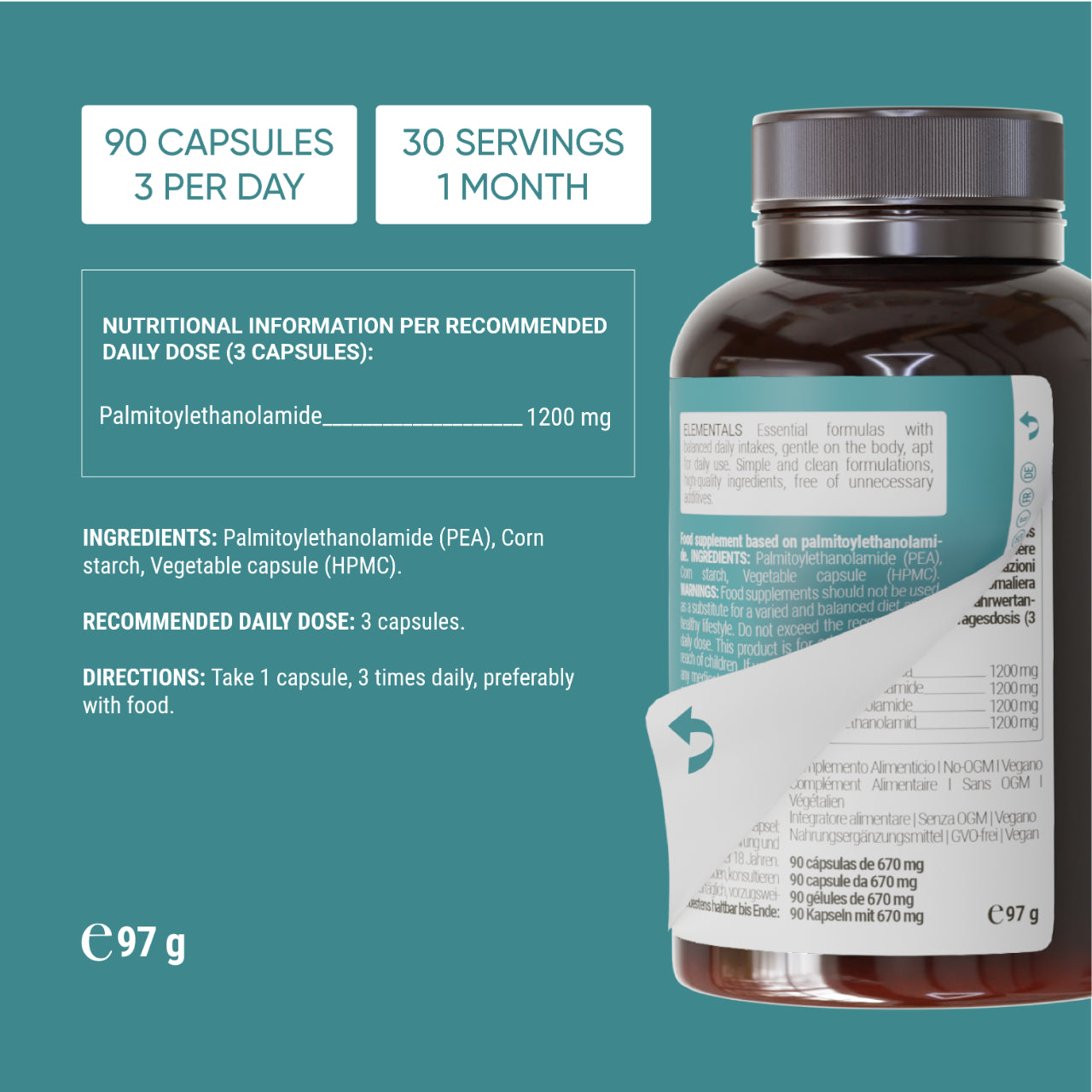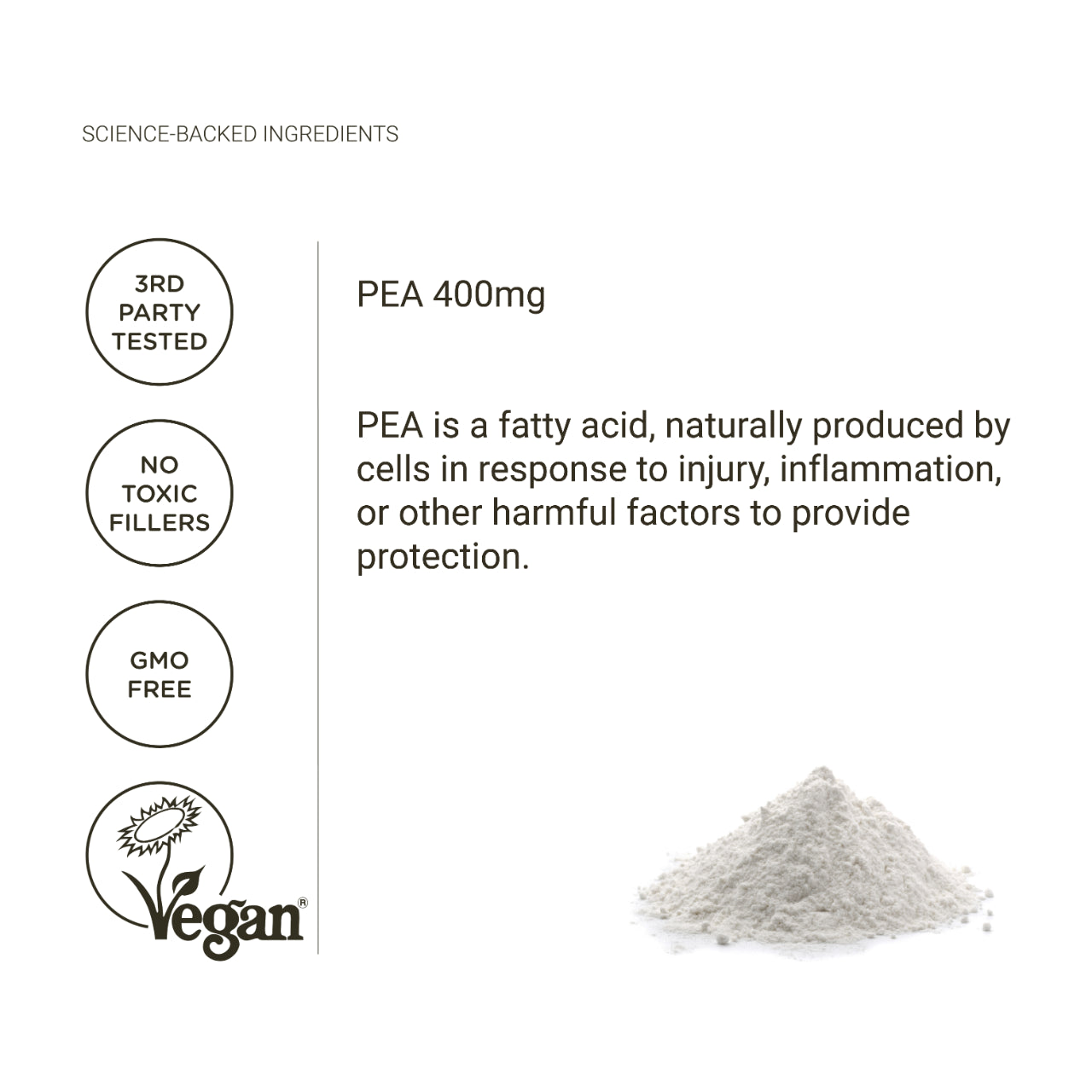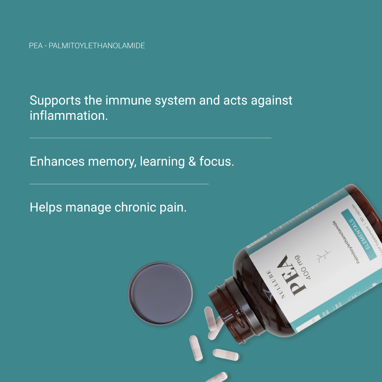 La palmitoiletanolamida es un potente antiinflamatorio que favorece un sistema inmunitario sano y tiene propiedades neuroprotectoras para la salud cerebral y la función cognitiva.