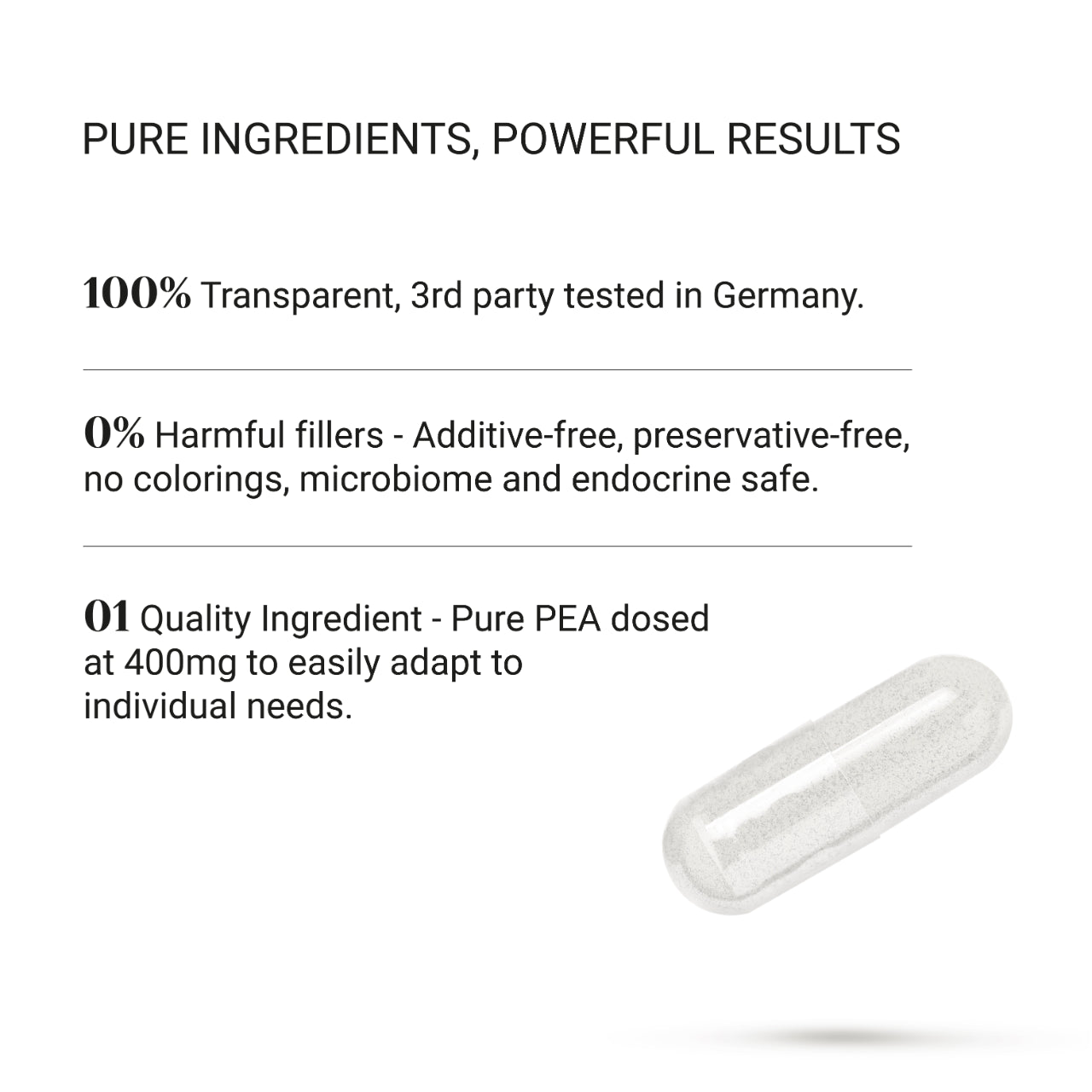 Sin rellenos nocivos, aditivos artificiales ni conservantes innecesarios.