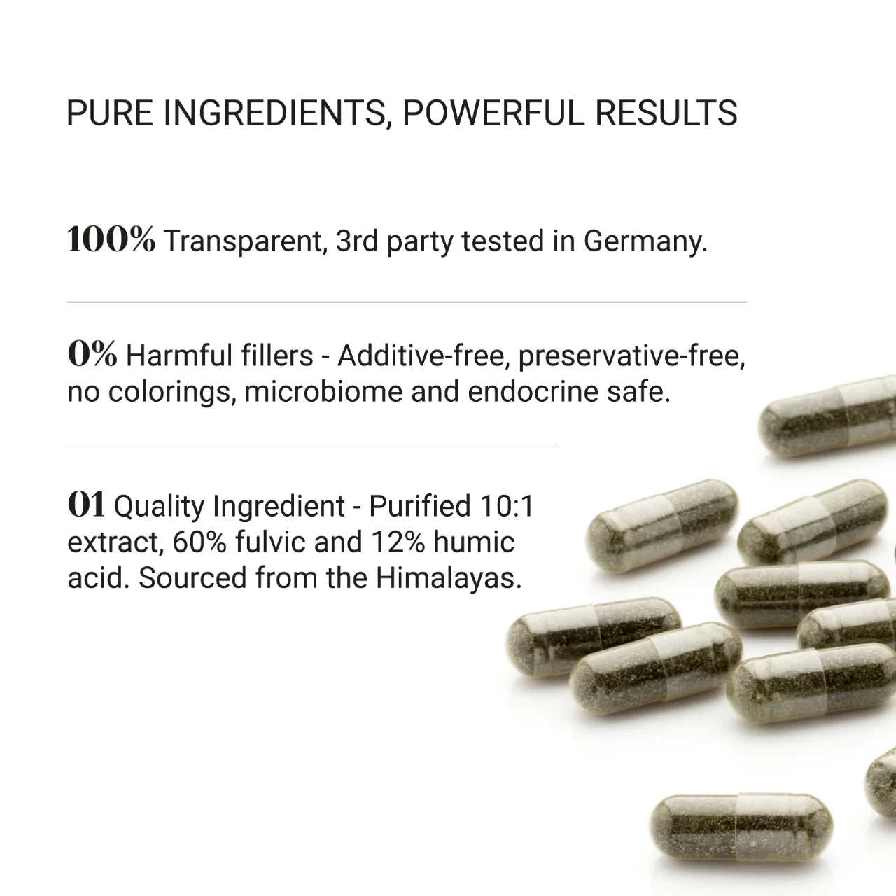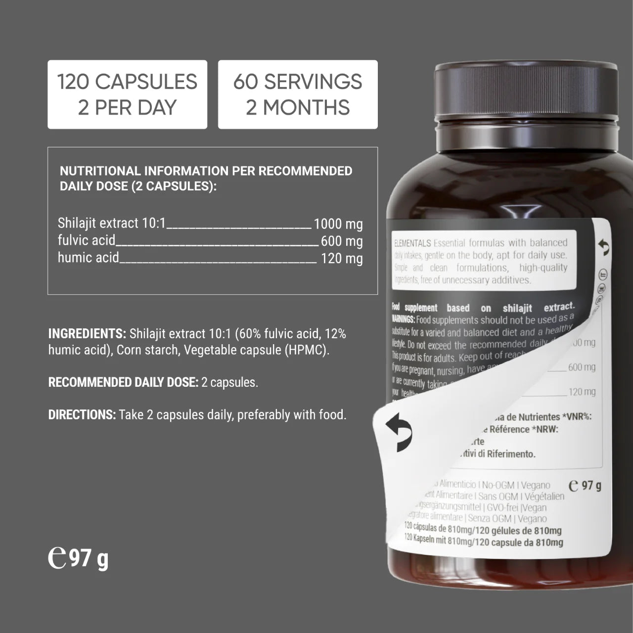Lo shilajit aiuta ad aumentare l'energia e la vitalità, a migliorare la forza muscolare e il recupero dopo l'esercizio fisico e a favorire una maggiore chiarezza mentale e concentrazione. Inoltre, lo shilajit può essere utile per la salute ormonale, metabolica, della pelle e delle ossa.