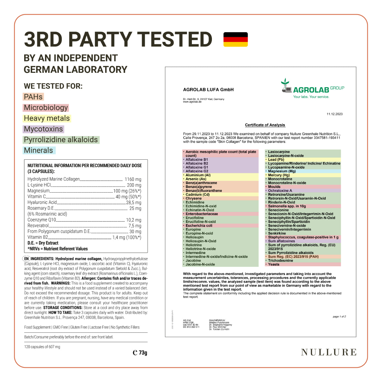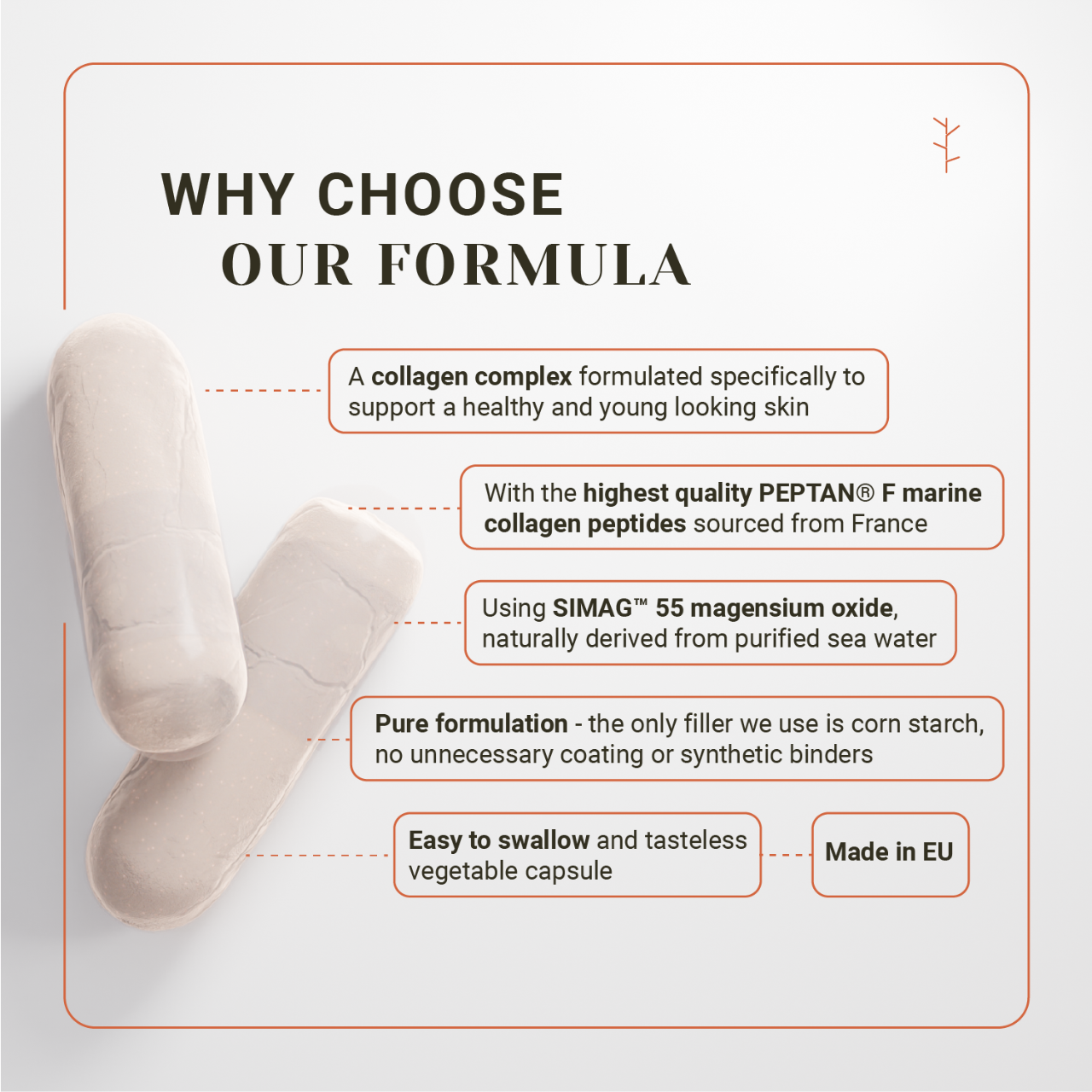 Marine Collagen complex contributes to anti-aging, refuel collagen and improve skin elasticity.
